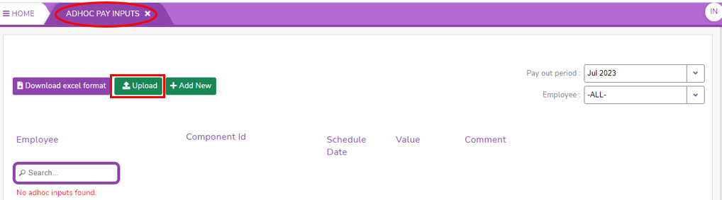The Ad-hoc payroll Input page in the SPARC allows you to view, add(bulk/individual) and delete the ad-hoc payroll inputs of the employees.