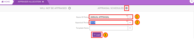 - Load : Click on Load button to process the annual appraisal allocation for the selected financial year. the screen opens like below screenshot.