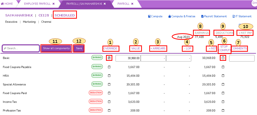 - Compute & Finalise: It is the process of finalisation of computed payroll process