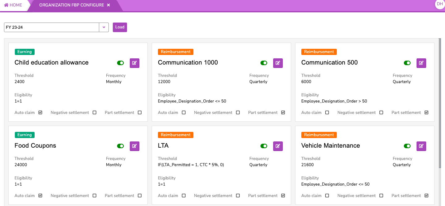 - Eligibility : It refers to the criteria that an employee must meet to be able to participate in the FBP and access the customisable benefits offered by the organisation (Note : Eligibility 1=1 means, It applies to every one)