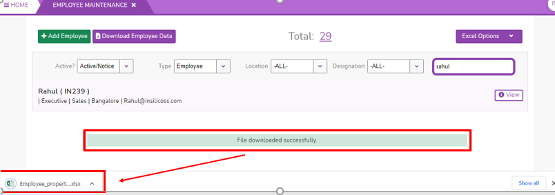 - Click on Excel options and then click on Download Employees properties Template, Employee properties upload template will be downloaded